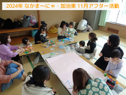 昨年は加治東地区行政センターなどで、活動を行ってきたなかま~にゃアフターです。今年も引き続きママスタッフを中心に活動していきたいと思っております。どうぞよろしくお願いいたします。